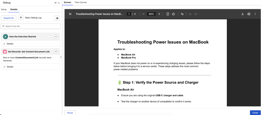 When you debug a flow, the values you enter to test it are saved in your browser cache. So the next time you debug, those values are still there and you don’t need to re-enter them each time. Even if you close and reopen the debug side panel, your inputs remain. This behavior applies to both Screen Flows and Record-Triggered Flows.